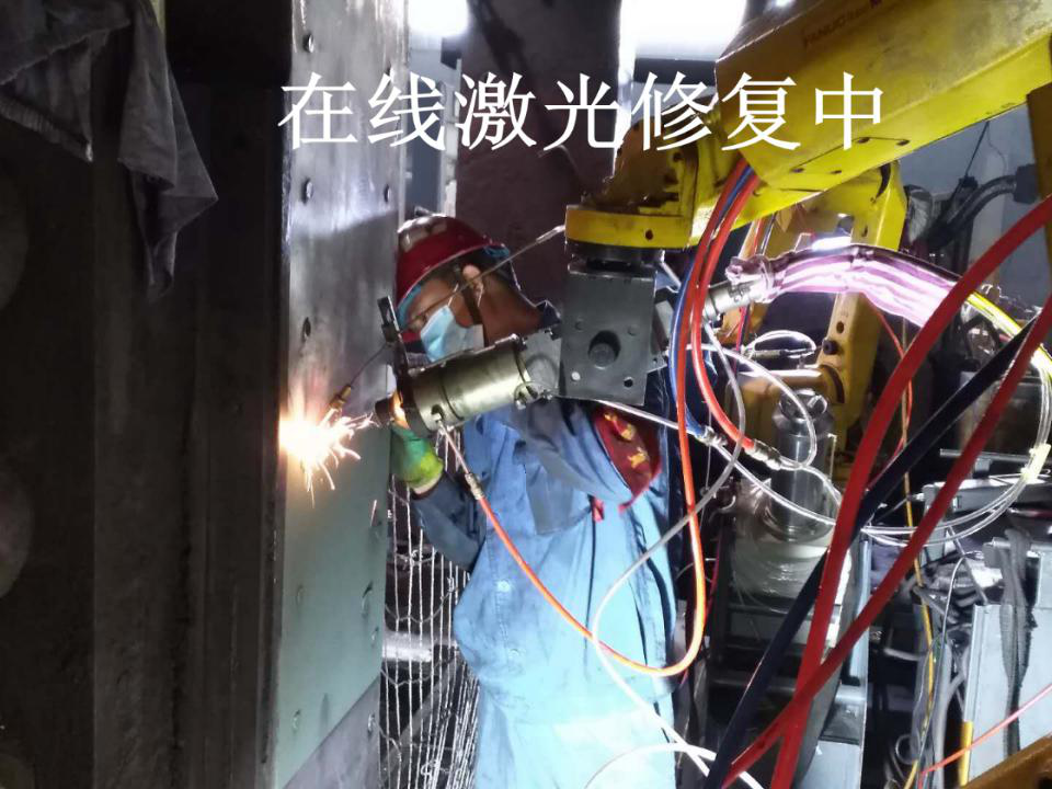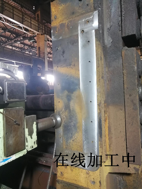 2020年5月20日,我公司組織20余人的施工隊伍進入現(xiàn)場,對粗軋機所有窗口襯板面進行在線加工,激光修復,單塊損傷量大約在2-3mm,最深腐蝕加工量達到8mm,經過180多小時不間斷連續(xù)施工,提前36小時順利完成維修任務,恢復牌坊使用精度要求,一次交檢合格,獲得了廠家認可和贊揚。