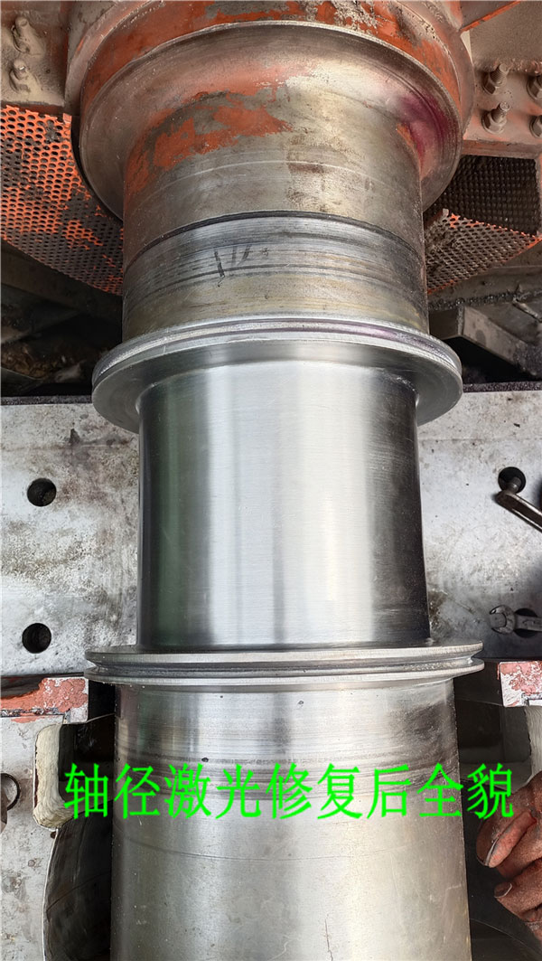 施工人員群策群力,克服機組所處高空戶外、雨雪的惡劣施工條件,準(zhǔn)備材料、制作工裝,搭建施工防水平臺,安裝調(diào)試設(shè)備,僅用3天時間就順利完成了主軸頸的激光修復(fù)項目,恢復(fù)圖紙設(shè)計尺寸,一次交檢合格,真正的解決了機組運行問題。
